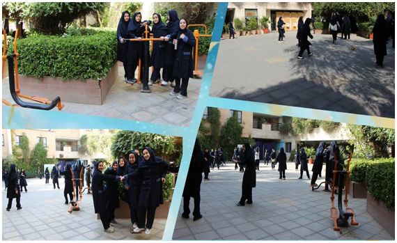 شادی و نشاط و انجام ورزش در حیاط با صفای آموزشگاه در زنگ تفریح